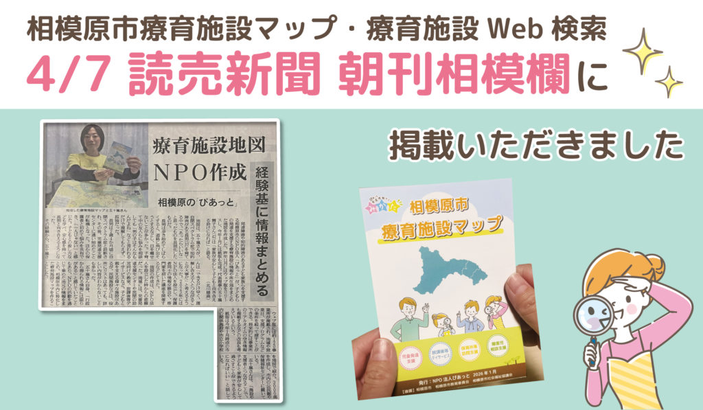 4/7(火)読売新聞 朝刊の相模欄にて、ぴあっとの「相模原市療育施設マップ」と療… -