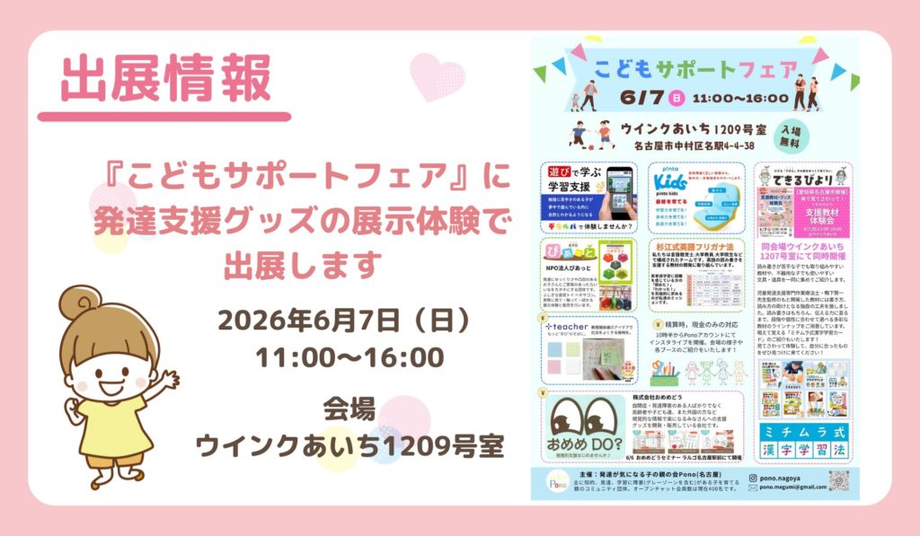 【愛知県名古屋市】『こどもサポートフェア』に発達支援グッズの展示体験で出展します|2026年6月7日