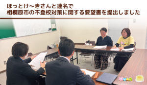 ほっとけ~きさんと連名で、相模原市の不登校対策に関する要望書を提出しました