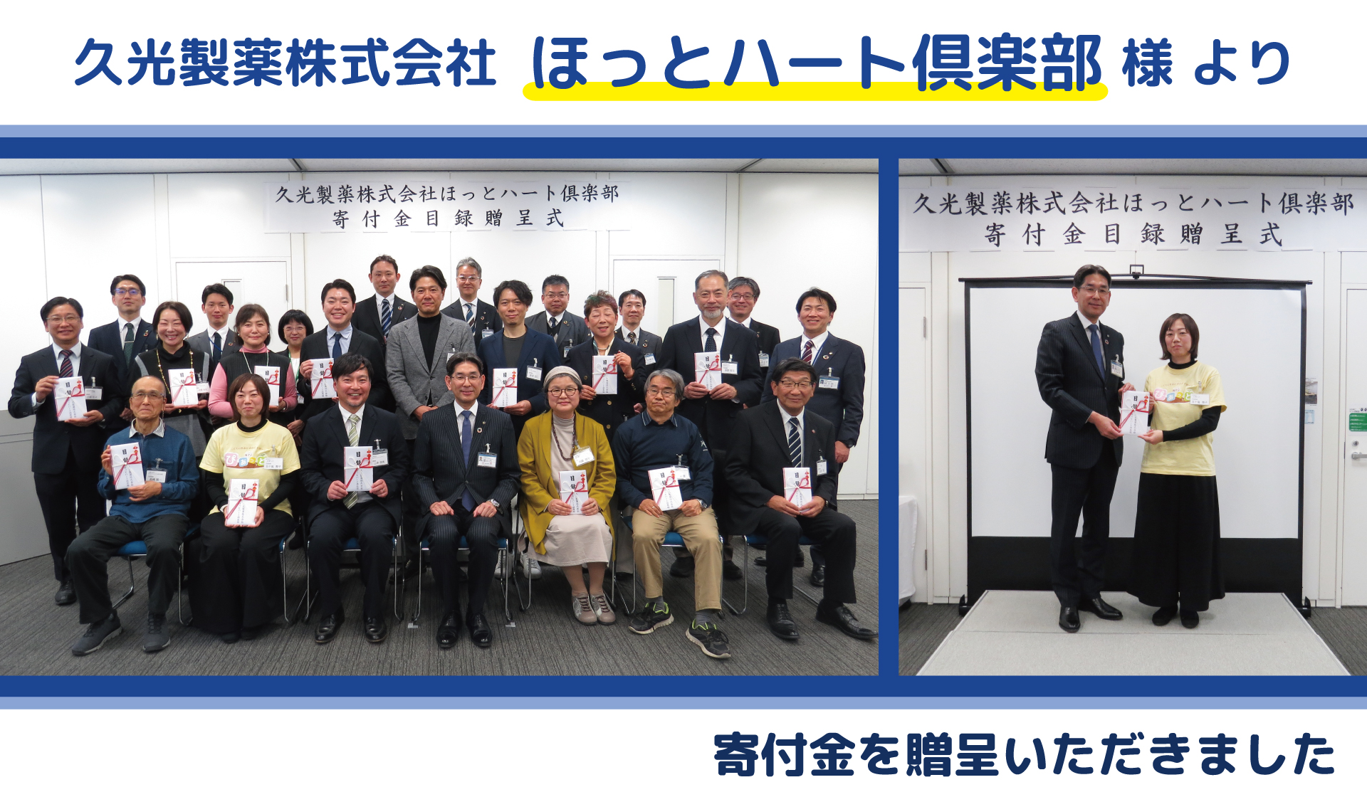 久光製薬株式会社ほっとハート倶楽部様より寄付金を贈呈いただきました